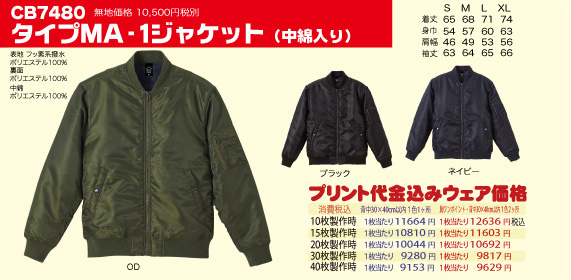 タイプMA-1ジャケット(中綿入り)